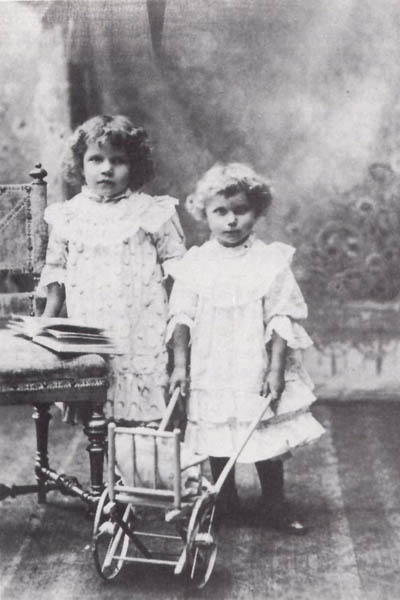 Once again they are in the country. Toni slowly turns around and glances in all directions - the land is flat, with seemingly endless expanses of grass. On one side she sees a body of water with some trees around it. Toni and her sister, Gustie, age six, (Picture 1-1) wander off to explore the area, and find a broad, deep coulee where they discover curious circles of stones and their young imaginations run wild. The circles of stones, which they later learn are the remains of a camp of nomadic Indians, the natural shrubs and the springs of water in this coulee all combine to make this the favourite play area for the two little girls. Here they fill numerous golden days, discovering the secret places and natural wonders of their new world, all within calling distance of their new residence on their parents Alberta homestead.