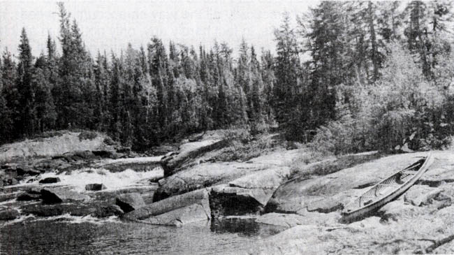 Reedy Lake, Monday, 20th - It's been blowing, still is, like hell again, making it awfully hard paddling, and was I tired when I got here, what with bucking current and wind and wild rice, 10 portages. It always comes back to my chief lament (if only you were here), you would have helped me so much paddling and portaging, and when we landed here it would not have taken long to put up the tent and stove, we would have been so busy talking that we would not have known that we were tired. There are more ducks now, shot 2 mallards, if only I could wish them down to you. I do not like this lower stretch of river, too many memories, and being all alone they sort of get me down. The leaves are falling right along now, but in spite of the lateness of the season I had a feed (small) of, you'd never guess, red currants today. You remember just below the twin rapid that very narrow gap between the boulders and the rock, on the south side coming up, there used to be a swallows nest stuck to the rock, right there on a little ledge this straight rock only about 4 inches wide is the currant bush; the currants were very nice but seeds quite large. I'm sort of figuring on taking that bush home next spring. It took 8 1/2 hours coming up from Whiskey Jack camp today. As I'll be mentioning the different portages, etc., from time to time, I'll list them in the proper order - from Whiskey Jack Lake to Camp Lake (Sketch 10 - 5).