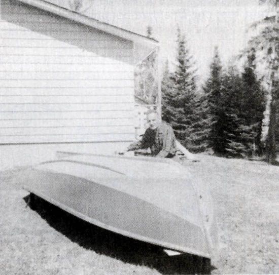 Picture 12-3 Rod putting the finishing touches on his sailboat at Longbow Lake