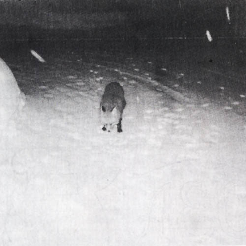 The first winter Rod and Toni lived at Longbow Lake, they became aware of a red fox who, although wild, seemed less wary of humans than most foxes. The wild animal began coming around the house, and Rod gave him handouts of food. Talking with one of their neighbours, they found she was feeding him also. Soon Rod decided he would teach this fox to 'ring' for his treats. Attaching a cord to the doorbell, Rod baited the other end of the cord with a tasty morsel of meat. When the fox came around to check for his regular handout, he smelled the meat on the porch, just outside the kitchen door. Wary, but hungry, he mounted the steps and chewed at the cord. The ringing of the bell startled him, but he came to understand when the bell rang, Rod brought out more food.