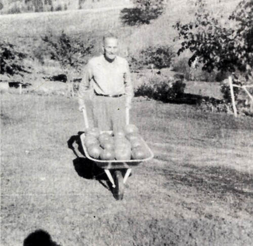 Picture 13-4 Rod with some of the huge crop of pumpkins they grew at O'Keefe Siding