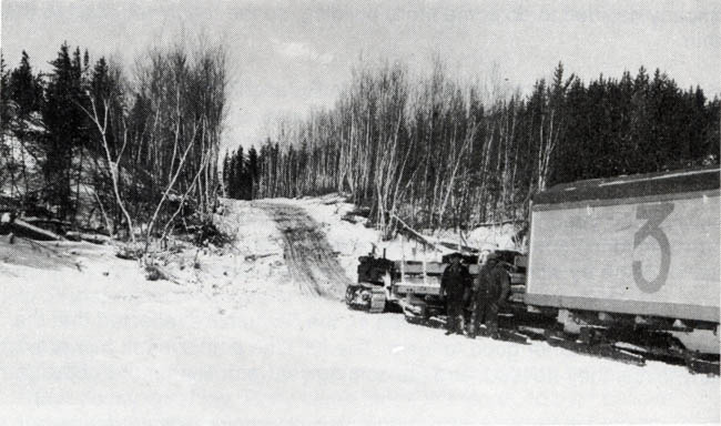 Picture 9-5 Building winter roads. The cats are working on the slope, and the caboose shows the door at the backend